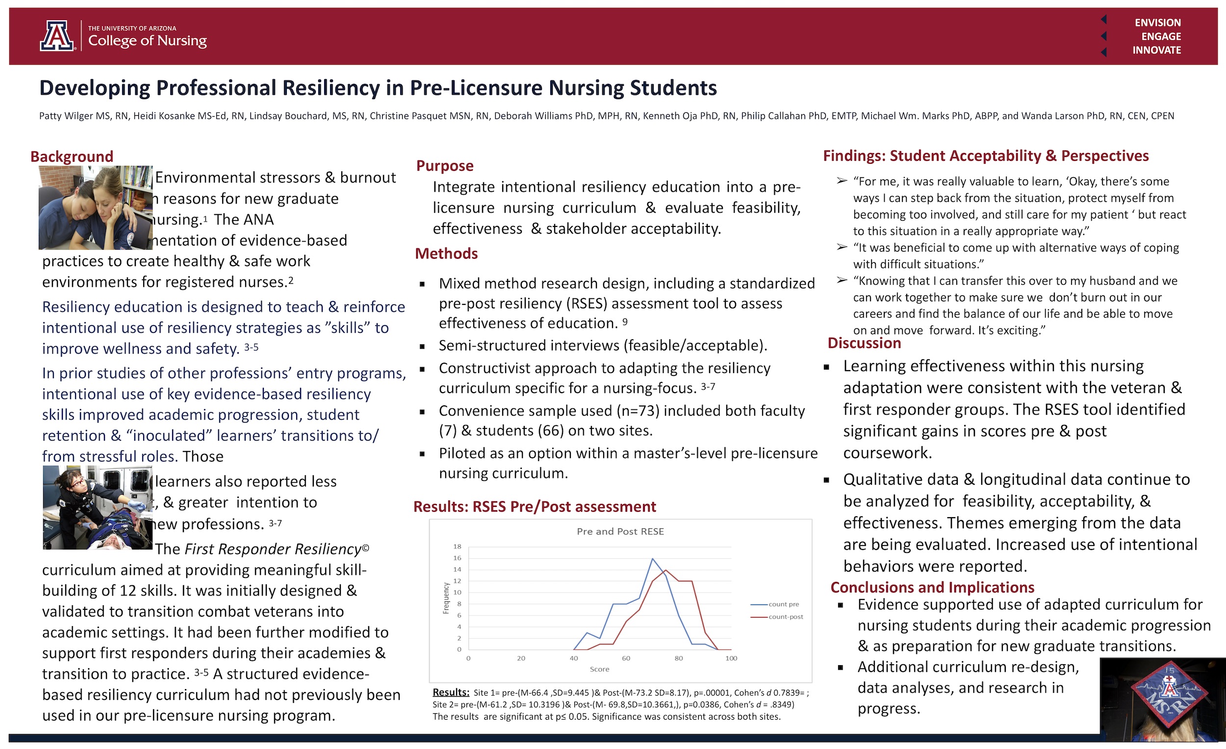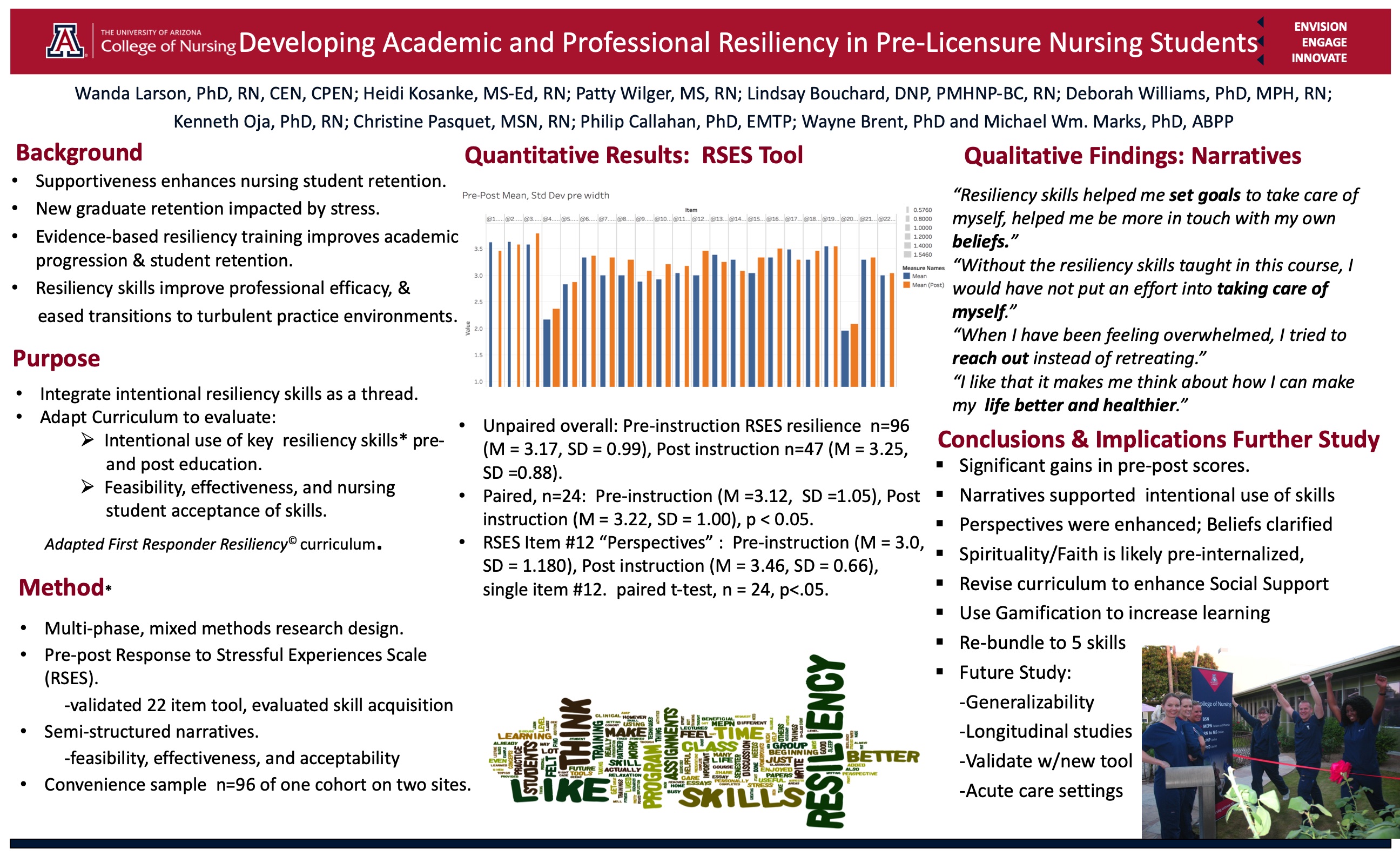 The University of Arizona, College of Nursing, integrative nursing with resilience encourages putting on 'mental armor' to better protect ourselves from stressful challenges and to better prepare ourselves for academic success. The resilience model blends positive-coping skills, social support, and problem-based learning focused on personal and educational challenges that occur in the curricula timelines. This is a legacy look at some of the resources and results of the endeavor.
